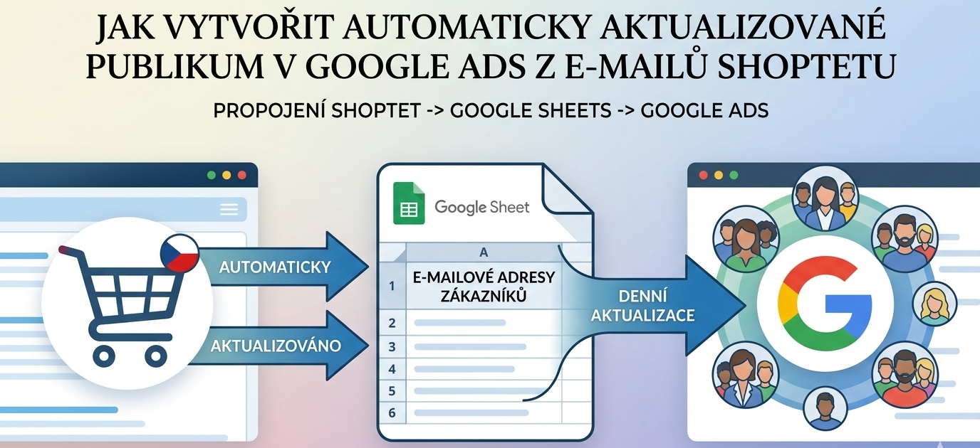 V tomto článku si ukážeme postup, kterým si můžete nahrát do Google Ads vlastní publikum tvořené e-mailovými adresami Vašich zákazníků a toto publikum se bude automaticky aktualizovat a doplňovat o nové zákazníky. Postup si ukážeme na e-shopu běžícím na platformě Shoptet.